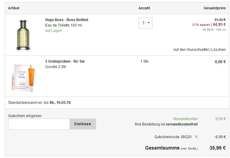 Der Gutscheincode BIG20 kann leider nicht eingelöst werden. Bitte beachten Sie die Gutschein-Bedingungen.