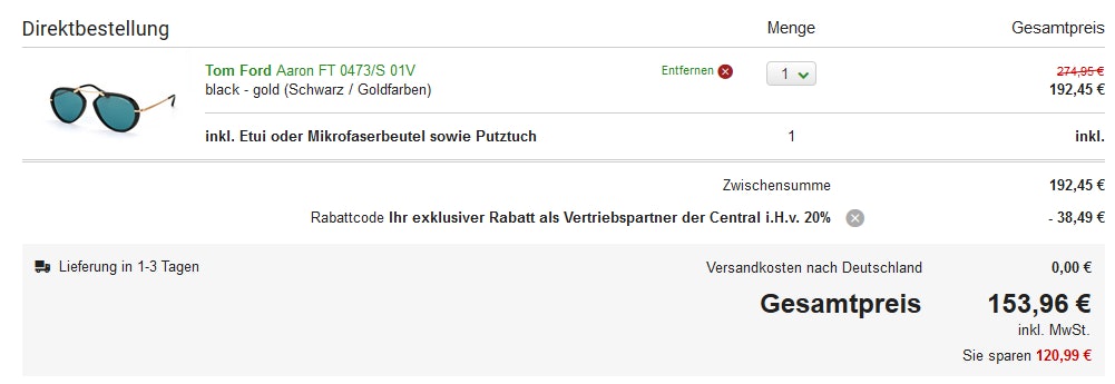 - Tom Ford Aaron FT0473/S 01V (black-gold/grey) für 153,96€ inkl. Versand (Preisvergleich: 173€)