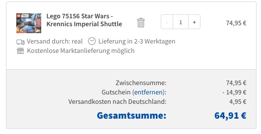- mit Gutscheincode 20-prozent-auf-lego – nur wenn Verkauf von Real