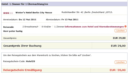 Wollte grad für 59,99 Euro (1 Nacht im Hotel) buchen (mit Gutschein dann also 39,99 Euro) und opodo sagte dann: "Der Betrag Ihrer Buchung ist leider zu gering, um den Reisegutschein einzulösen." Für den doppelten Preis (2 Nächte) hätte es dann geklappt. Schade.
