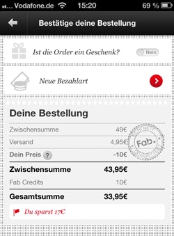- die Fab App (Android / iPhone) runterladen und darüber einkaufen. Nur am 25.12. gibt es 10 Bonus