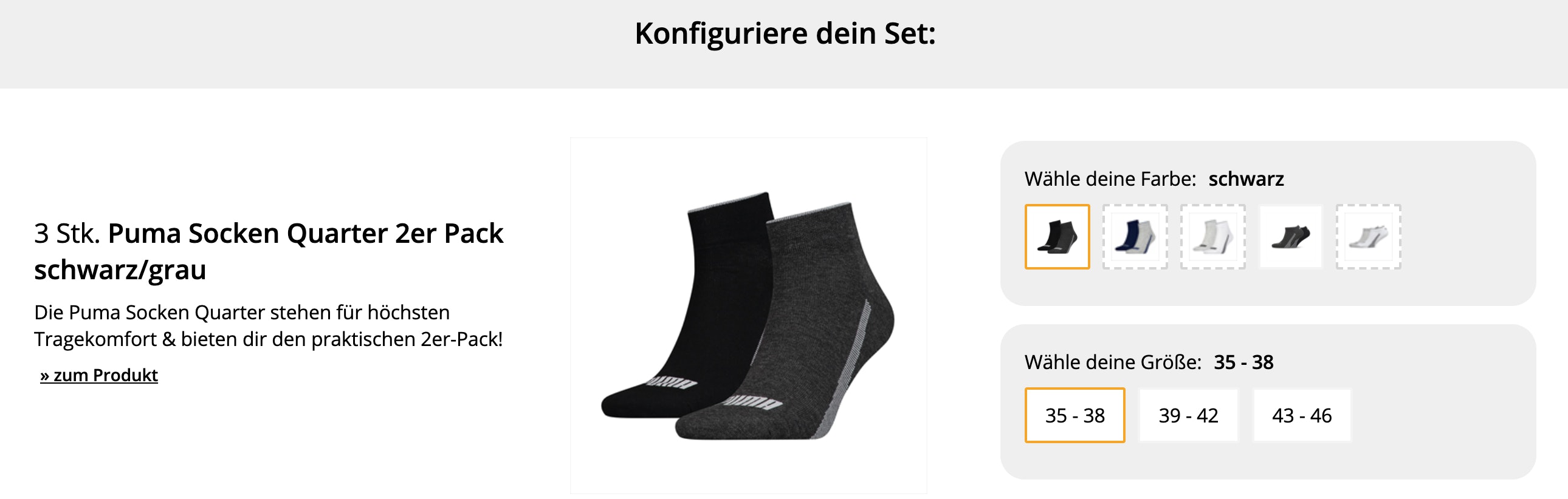 Socken gehen schnell kaputt, oft verloren oder werden einfach von der Waschmaschine verschluckt. Was auch immer euren Socken passiert ist, mit diesem Angebot erhaltet ihr einen ausreichend großen Vorrat an Fußtextilien. Ob als Quarter- oder Sneaker-Socke oder einfach beides, ihr könnt das Set, bestehend aus 24 Paar Socken von Puma, individuell nach Form, Größe und Farbe zusammenstellen. Mit dem Gutscheincode 24er spart ihr euch die Versandkosten.