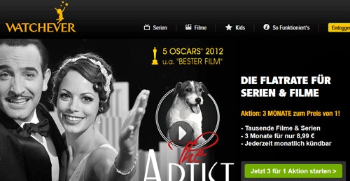 Hier zwei Nachrichten auf einmal. Zum einen gibt es bei Watchever jetzt wieder die gute Aktion, bei der ihr 3 Monate Nutzung zum Preis von 1 bekommt: