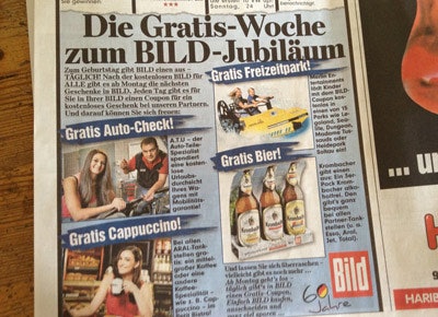 Nur ganz kurz: in der heutigen BILD-Zeitung ist der Coupon für das am Samstag angekündigte Gratisbier.