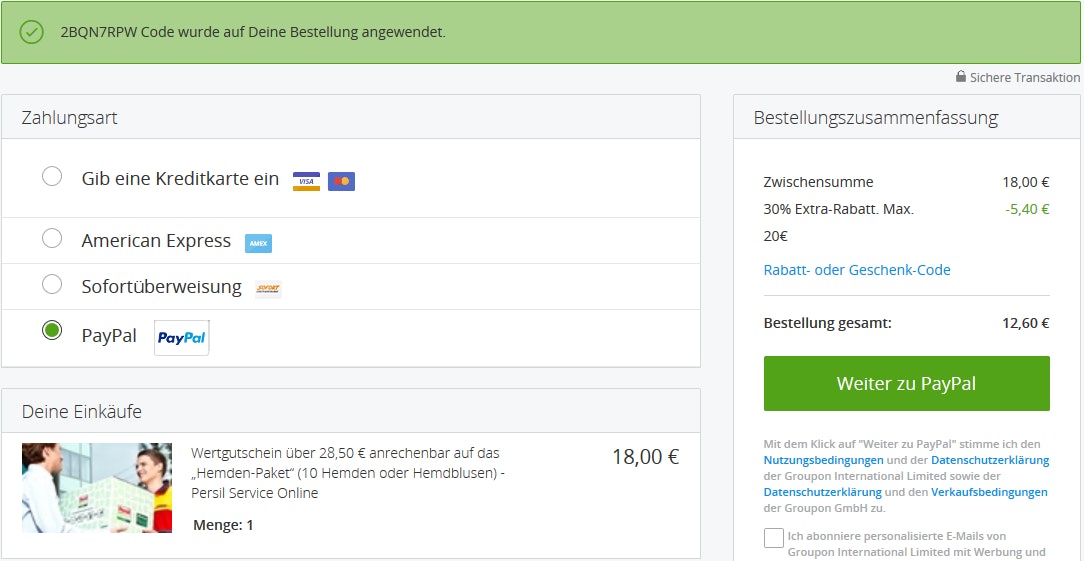 Wie immer gilt der Spaß nur auf lokale Deals bei Groupon – einige Angebote von der Startseite können daher nicht mit dem Gutscheincode kombiniert werden. Bei manch anderen Angeboten, die auch überregional gelten, funktioniert das Ganze aber trotzdem. Probiert es am besten einfach mal selbst aus. Offiziell gilt der Code nur für Neukunden, aber ihr wisst ja wie der Account-Hase läuft 😉