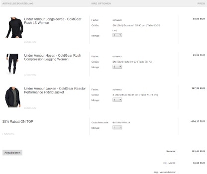 - 35% Extra-Rabatt auf Under Amour Artikel bei Mysportswear