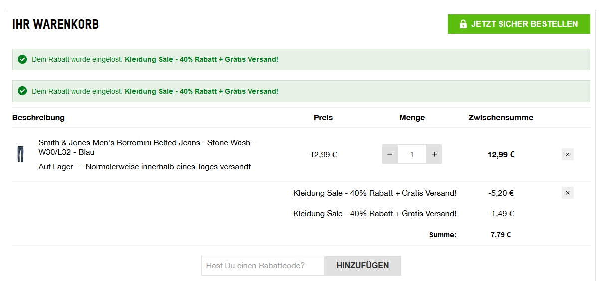 Auf der Seite von Zavvi stehen noch nicht die finalen Preise, ihr könnt immer noch 40% Rabatt von den bereits reduzierten Angeboten abziehen. Wir haben euch als kleinen Anreiz mal ein paar richtig gute Beispiele rausgesucht, so bekommt ihr z. B. Sneaker oder eine Bomberjacke für gerade mal 10€. Die Versandkosten entfallen mit dem Gutscheincode ebenfalls.