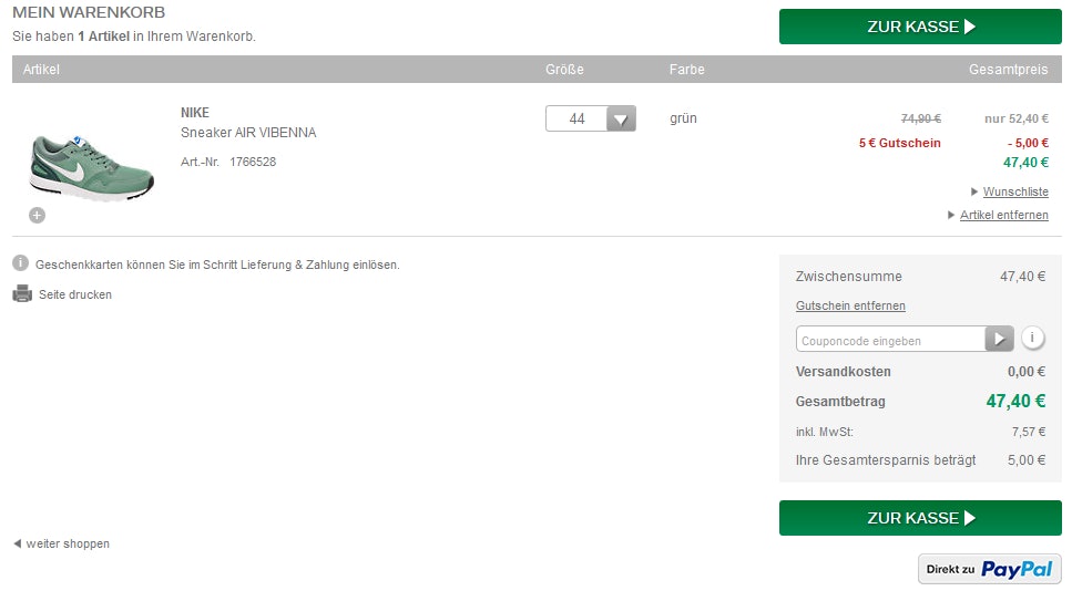 Anbei noch ein Screenshot aus dem Warenkorb: