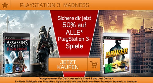 50% Rabatt auf PS3 Titel bei Ubisoft und ein, zwei, drei PC-Spiele gratis dazu :)