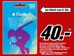 - 50 iTunes Guthaben für 40 bei Media Markt (PDF) – entspricht 20% Rabatt