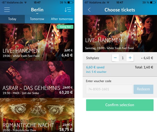Tickets gibt es für die Städte Köln, Berlin und Hamburg. Die Events sind auf der Homepage, der Gutschein lässt sich aber nur in der App einlösen.