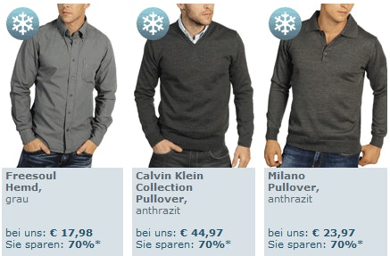 Nachdem es nacheinander 30 und dann 60 Prozent Rabatt gab, sind wir mit 70% Rabatt im dress-for-less Wintershop wohl auf der letzten Rabattstufe angelangt. Der Rabatt gilt immer auf die UVP und ob das wirklich so korrekt ist, kann man leider nur schwer kontrollieren. Ich habe aber mal gestöbert und es macht in der Tat einen sehr günstigen Eindruck auf mich: