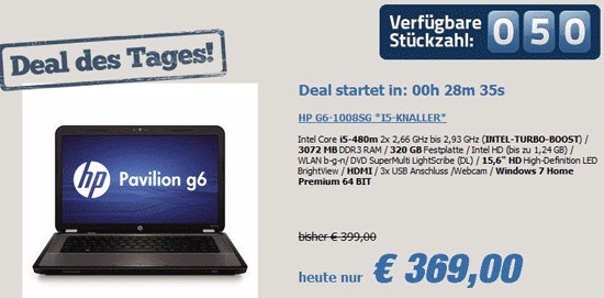- HP G6-1008SG für 369 (Preisvergleich: 399)