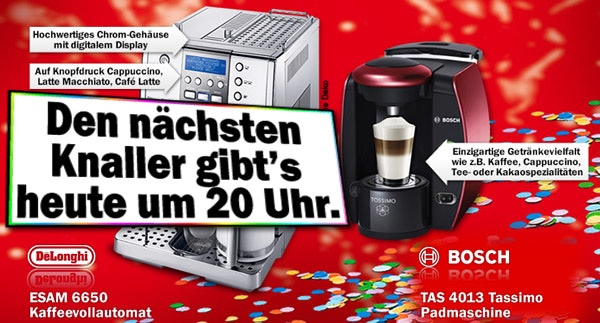 Ab 20 Uhr gibts wieder Faschingsknaller bei Media Markt. Diesmal handelt es sich um zwei Kaffeemaschinen: