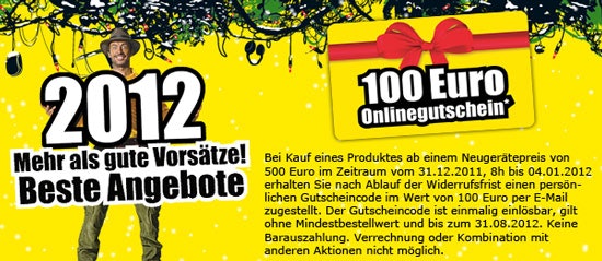 - 100 Promarkt Gutschein beim Kauf eines Produkts ab 500 zwischen 31.12.11, 8 Uhr und 04.01.12