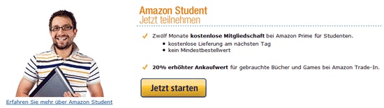 Amazon Student habe ich hier schon mal besprochen und das Angebot ist unverändert gut. Die neue Aktion, bei der man nicht nur Student kostenlos bekommt, sondern obendrei noch beschenkt wird, ist aber ein guter Anlass, nochmal darüber zu berichten: