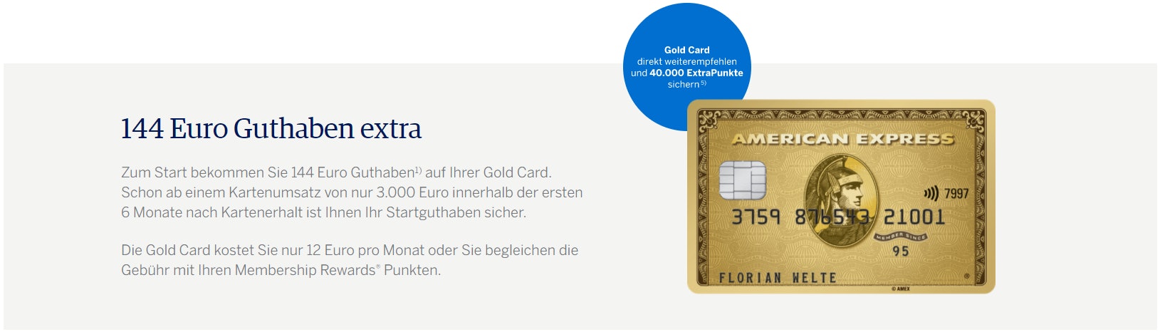 American Express Gold mit 144€ Startguthaben – mit 40.000 Membership Rewards Points