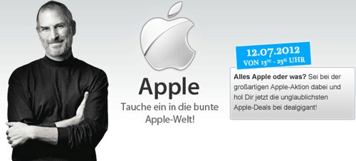 Es ist mal wieder Zeit, über Dealgigant zu schreiben, beim letzten Mal waren die Server ja sofort überlastet. Generell scheint mir Dealgigant sehr unseriös, weil die Angebote kein Geld einspielen können und das auch kein offizieller Deal mit Apple sein kann: