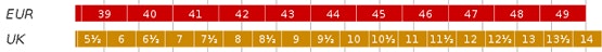 Hinzu kommen noch ~1,32 Kreditkartengebühren. Hier noch die Umrechnung der Schuhgrößen: