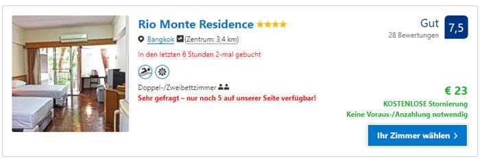 Für Bangkok ist die Hotelsuche fast wie Zuckerschlecken, denn die Metropole ist nicht teuer. Schaut euch bei den Hotelvergleichsseiten booking.com und hotelscombined.com um. Hier ein paar Beispiele mit 4 Sternen und einem Pool ab 23€ für zwei Personen. Übernachtungen im Hostel sind ab 8€ verfügbar.