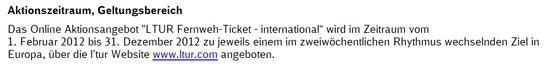 - LTUR Fernweh-Ticket International für 35 pro Strecke (noch nicht online) – begrenzte Verfügbarkeit