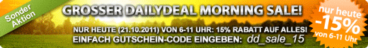 Noch bis 11 Uhr läuft bei Dailydeal der Morning Sale und mit 15% gibt es einen wirklich guten Rabatt, im Grunde das Maximum, was normalerweise so drin ist. Also schlagt zu: