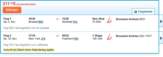 - Brüssel – Montreal und zurück von New York – Frankfurt/Berlin/Hamburg ab 211,42