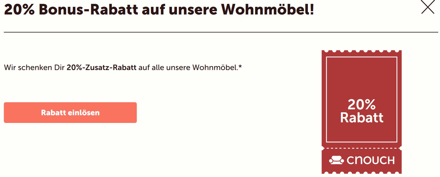- 20% Rabatt auf Wohnmöbel bei Cnouch.de