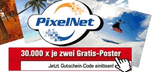 Schon wieder eine neue Computerbild-Aktion, die sich sehen lassen kann. Für 2,59 Versandkosten gibt es bei Pixelnet 2 Gratisposter mit den Maßen 50 x 75 cm.