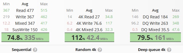 Das Wichtigste sind wie immer die Transferraten der SSD und die sehen laut UserBenchmark (beispielhaft für die 960GB Variante) wie folgt aus: