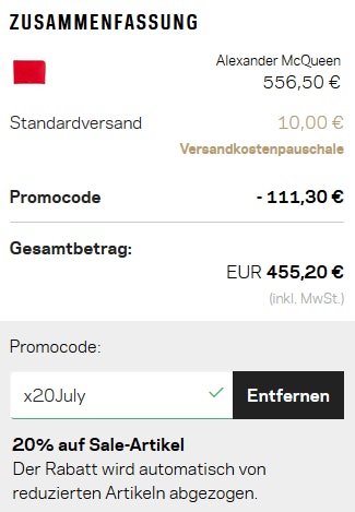 - Gutscheincode: X20JULY