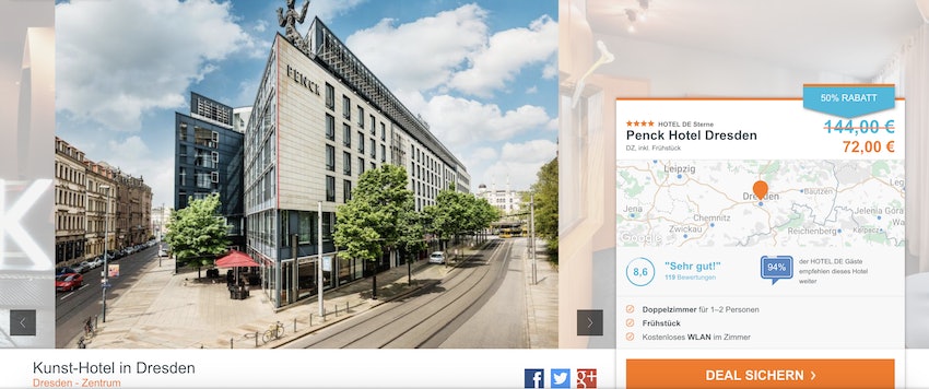 - Dresden: Übernachtung im 4*Hotel inkl. Frühstück ab 72€ für 2 Personen bei Hotel.de