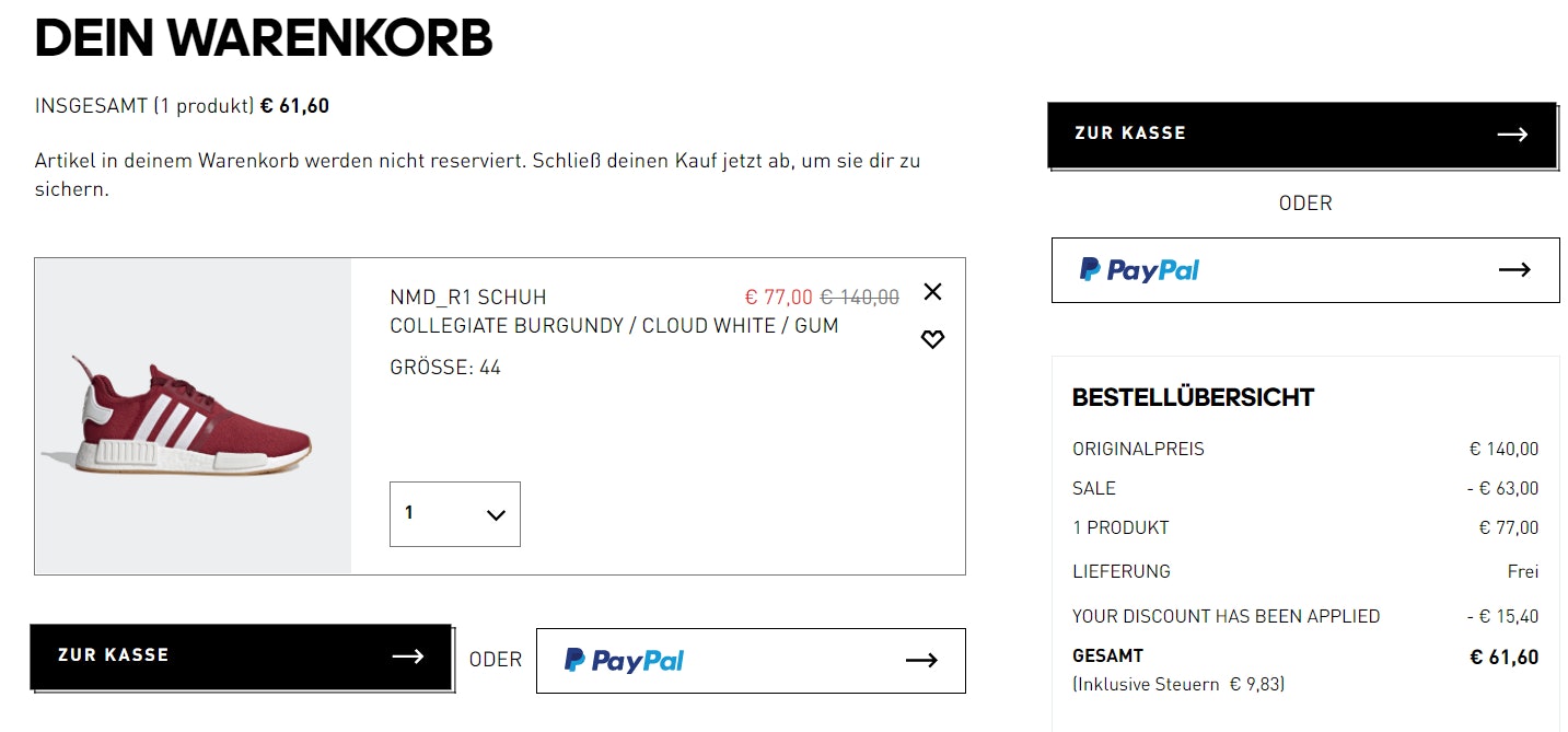 - Adidas NMD_R1 in Rot für 61,60€ inkl. Versand (Preisvergleich: 77€)