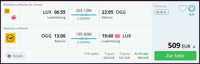- Luxemburg – Kahului: 5. – 15. November (509€)