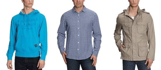 Im Bild zu sehen: Sweatshirt für 12,59, Hemd für 16,79 und Herrenjacke für 42,84.