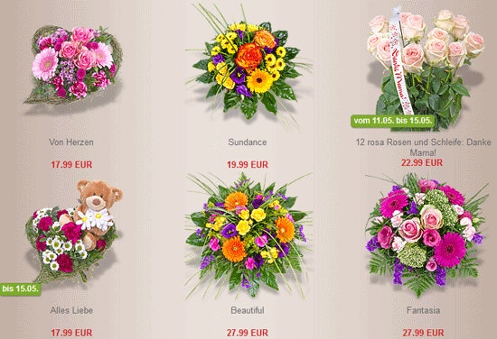 Gestern kam ein Sendung vom WDR markt wo valentins,fleurop,euro flowers und blume2000 getestet wurden. Valentins hatte dabei am schlechtesten abgeschnitten da die Blumen nie ankamen ;) http://www.wdr.de/mediathek/html/regional/2012/05/07/markt_komplett.xml?noscript=true&offset=1325&autoPlay=true#flashPlayer