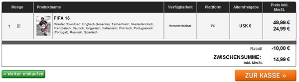 - FIFA 13 mit Gutscheincode kaufen und direkt herunterladen