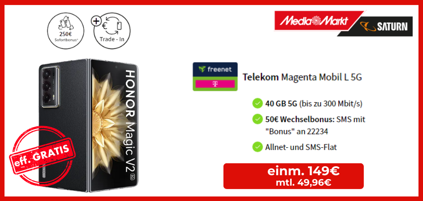 * Damit ihr als Verbraucher:innen Handyverträge untereinander besser vergleichen könnt, ermitteln wir für euch die "rechnerische monatliche Grundgebühr nur für den Tarif". Dafür addieren wir zunächst alle einmaligen und monatlich anfallenden Kosten über die gesamte Laufzeit des Vertrags. Danach ziehen wir davon etwaige Auszahlungen ab, sowie den Gegenwert der mitgelieferten Endgeräte (anhand des aktuellen Preisvergleichs). Schlussendlich dividieren wir diese Summe durch die Anzahl der Monate laut Vertragslaufzeit. Damit stellen wir euch eine Vergleichsmöglichkeit bereit, wie viel Datenvolumen, Freieinheiten und weitere Tarifleistungen ihr für welche rechnerischen Kosten erhaltet. Dies ist aus den reinen Angaben zur monatlichen Grundgebühr, der Zuzahlung für das Endgerät und allen weiteren Kosten sonst schwer ersichtlich. Der Wert eines Endgerätes wird so aus der Rechnung ausgeklammert - die kompletten Kosten geben wir unter "Gesamtkosten über 2 Jahre" an.