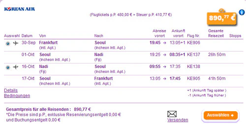 Flug auf die Trauminsel Fidschi für 890€ ab Frankfurt mit Korean Air