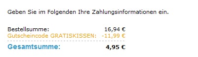Ich bin Neukunde um die wollen mir trotzdem noch 11,99€ für das Kissen und 4,95€ Porto abschwatzen.