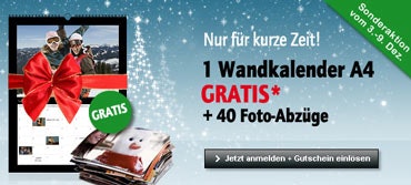 Eigentlich muss man einen Gutscheincode per Mail anfordern. Der ist aber bei jedem gleich und lautet GRAKAL2008D24. Die 40 Foto-Abzüge lohnen sich nicht, weil noch zusätzliche Versandkosten dazu kommen.