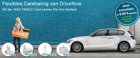 Für 9,98 bei DriveNow anmelden – inkl. 60 Freiminuten und 10 Gutschein für IKEA(regulär: 29) - habt ihr noch keine IKEA Family Karte könnt ihr diese hier bestellen