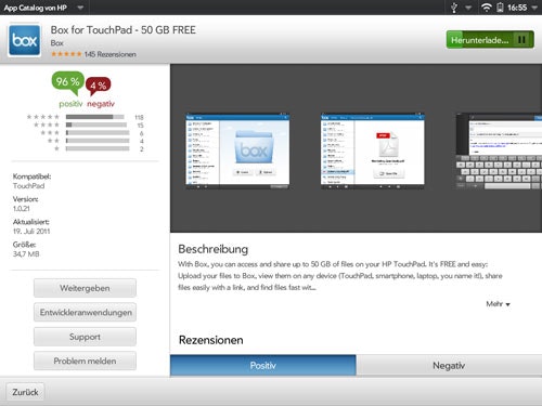 Wer sein Touchpad schon in den Händen hält, kann sich aktuell die Box App kostenlos runterladen. Dort gibt’s ein Leben lang 50 GB Speicherplatz in der Cloud, und das komplett gratis.