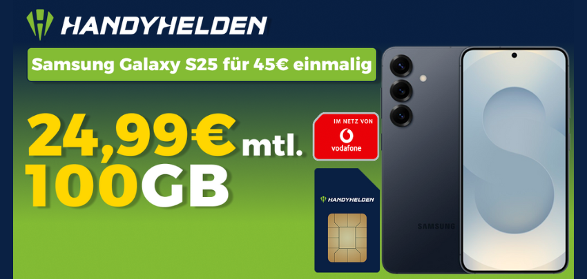 - Samsung Galaxy S25 für einmalig 69€ im 40GB Telekom-Tarif für 29,99€ mtl. bei gomibo.de