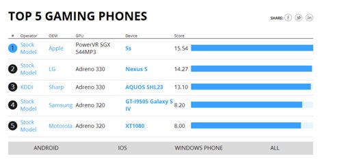 Für alle, die sich besonders für die Game-Leistung des Google Nexus interessieren. In Benchmarks von BasemarkX landet das Nexus 5 deutlich vor dem Galaxy S4 und noch knapp hinter dem iPhone 5s.