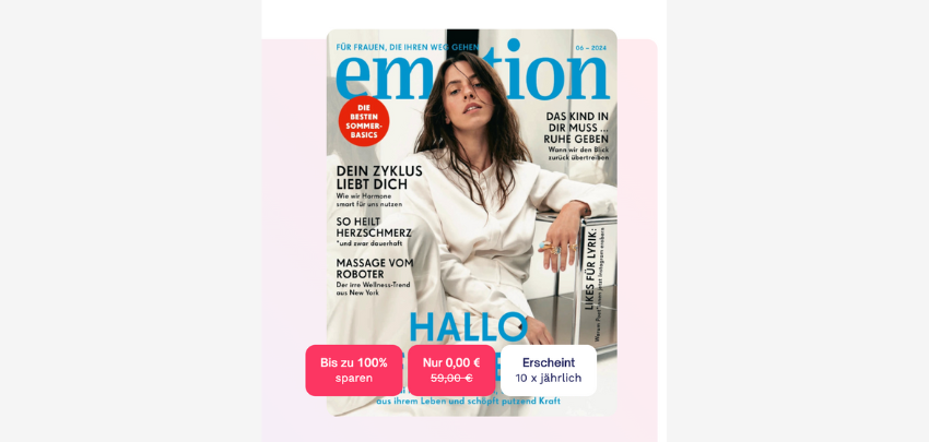 Der gewählte Empfänger oder Sie erhalten Ihren Wunschtitel zunächst für 12 Monate. Das Abo verlängert sich nach Ablauf der Mindestvertragslaufzeit zum jeweils gültigen Heftpreis (zzt. 4,99 € je Ausgabe) auf unbestimmte Zeit und ist mit einer Frist von einem Monat in Textform (per Briefpost, Fax oder E-Mail) gegenüber dem mit der Betreuung beauftragten Dienstleister kündbar.