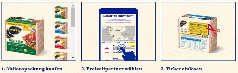 Auf 10 verschiedenen Sorten des Wasa Knäckebrotes ist der Gutschein aufgedruckt. Schneidet ihn einfach aus und nehmt ihn zu dem gewünschte Freizeitpartner mit. Um euch zunächst ein Bild von den Aktivitäten und den jeweiligen Konditionen zu machen, besucht die Aktionsseite von Wasa, gebt eure Postleitzahl un erfahrt dann, wohin ihr in eurer Nähe gehen könnt.
