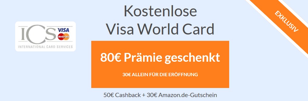 💳 Vorbei! ICS Visa World Card mit 80€ Prämie » dauerhaft kostenlose Kreditkarte 🤑