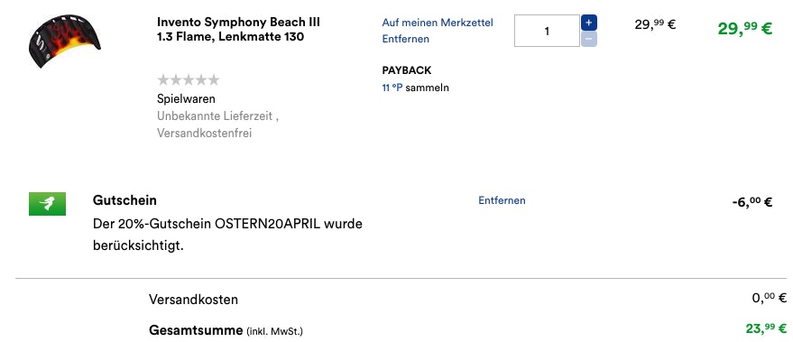 - Invento Symphony Beach III 1.3 Flame für 23,99€ inkl. Versand bei Thalia.de (Preisvergleich: 31€)