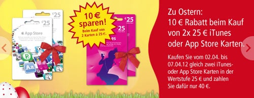 - 50 iTunes Guthaben für 40 bei REWE (bundesweit) – von Montag, 02.04. – Samstag, 07.04.2012